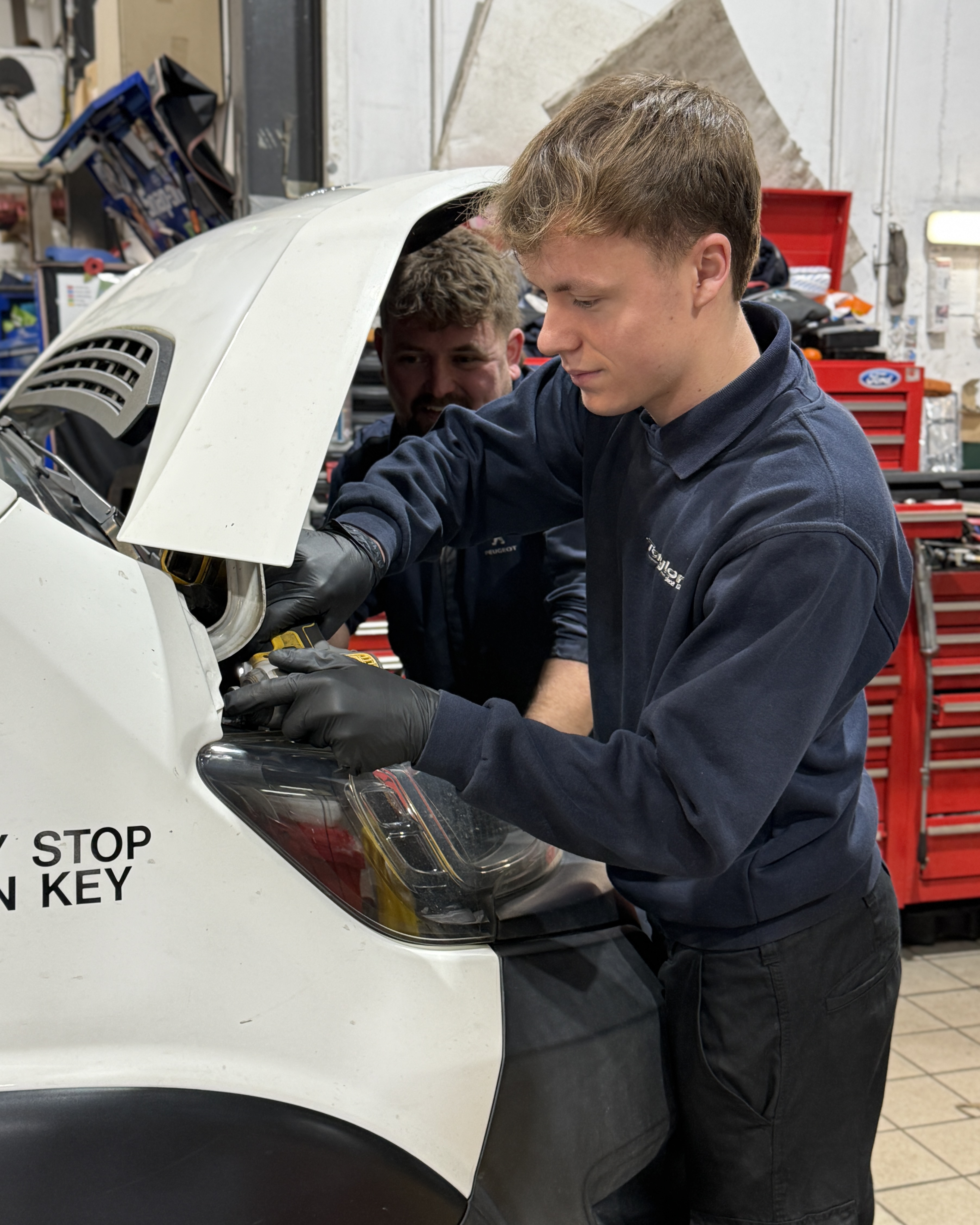 We currently have two apprentices developing their skills at Taylors Peugeot in Boston. Harry and Mikolaj are both completing three-year apprenticeships with the Stellantis Performance Academy, where they receive industry-leading manufacturer training alongside valuable, hands-on experience in our workshop.