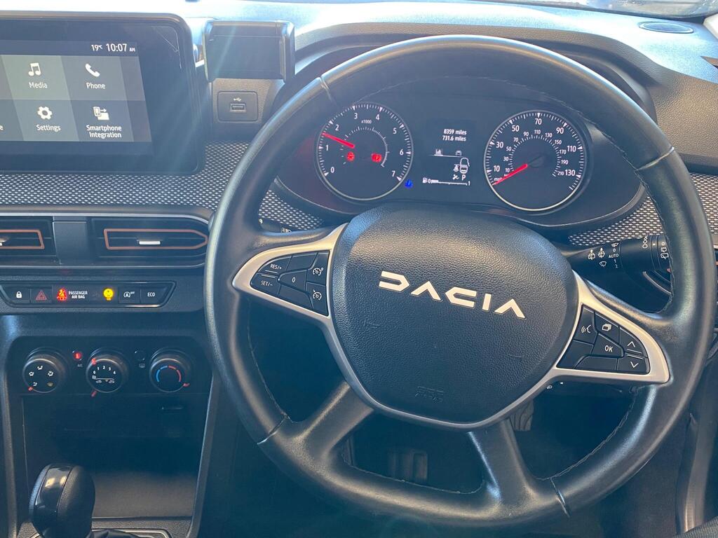 This 2023 Dacia Sandero Stepway TCe Expression is a remarkable find, boasting exceptionally low mileage of just 8204 miles from its single owner. This Euro 6 compliant 1.0L petrol engine variant offers a practical and stylish driving experience. The Expression trim level comes equipped with a host of convenient features, including manual air conditioning to keep you comfortable, and an automatic lighting system with distinctive LED Y shape Dacia lighting signature for enhanced visibility. Parking is made easier with rear parking sensors and a rear view camera, while keyless entry adds a touch of modern convenience.