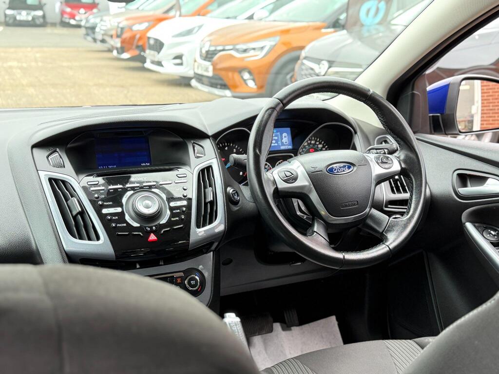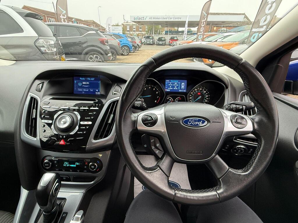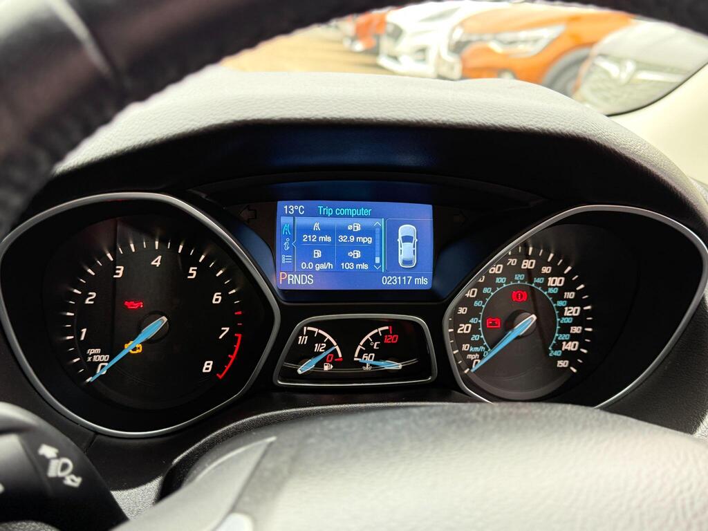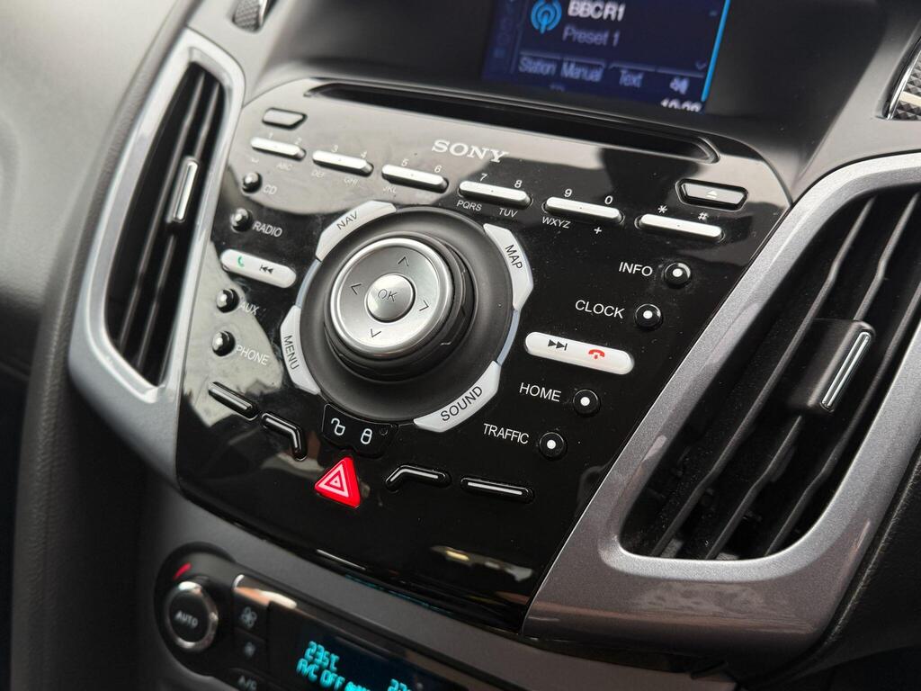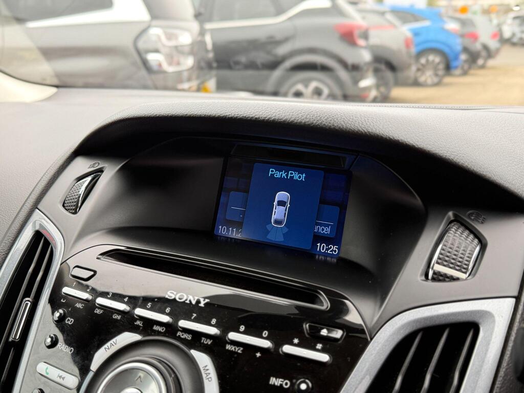 Discover this exceptional 2014 Ford Focus Titanium Navigator, boasting remarkably low mileage of just 23,117 miles for its age, this example is exceptionally clean for its age. It will also leave us with a new cambelt and a full service service to boot. This petrol model features a 1.6 litre engine and comes equipped with a host of desirable features. Stay connected and safe with Bluetooth handsfree and voice control, while the dual zone electronic automatic climate control ensures a comfortable cabin temperature for all occupants. Navigating tight spots is made easier with rear parking sensors, and the automatic headlights provide added convenience and safety by illuminating automatically when needed.