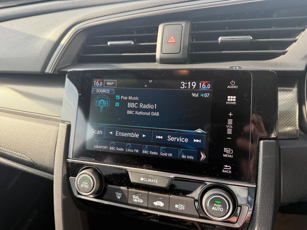 This 2019 Honda Civic VTEC Turbo SR offers a superb blend of efficiency and technology, making it an excellent choice for discerning drivers. Powered by a 1.0 litre Euro 6 compliant petrol engine, this model is designed for modern motoring. The SR trim level ensures a well equipped experience, featuring Intelligent Adaptive Cruise Control for relaxed journeys and a Rear Parking Camera complemented by Front and Rear Parking Sensors for effortless manoeuvring. Inside, you'll appreciate the Honda CONNECT system with GARMIN Navigation, which also includes Android Auto for seamless smartphone integration. The convenience of automatic dusk sensing headlights further enhances the driving experience.