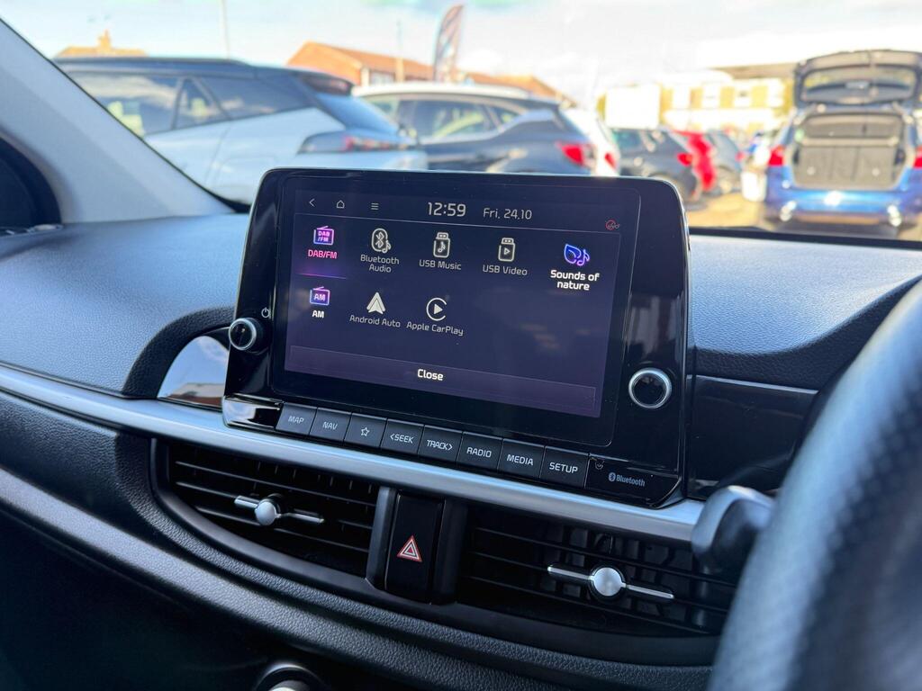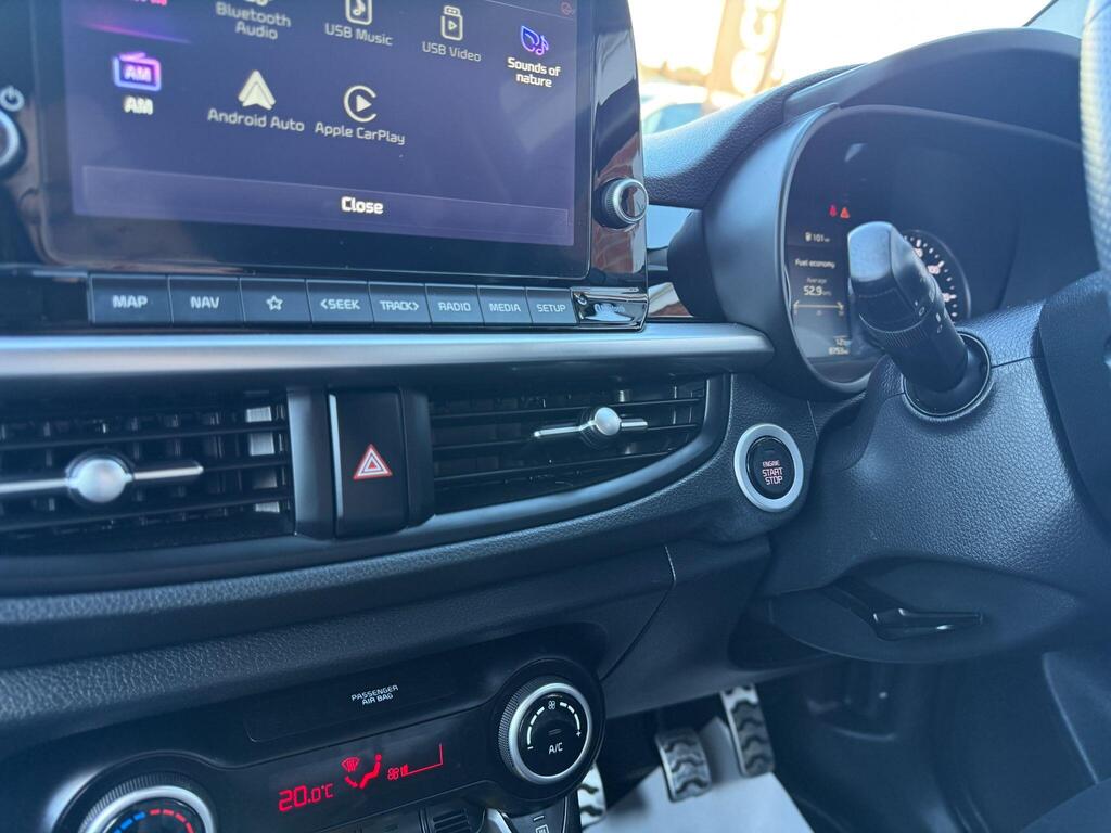 This 2022 Kia Picanto DPi X-Line S presents an exceptional opportunity with its remarkably low mileage of just 8753 miles, having been owned by only one careful keeper. This Euro 6 compliant 1.0 litre petrol model boasts the desirable X-Line S trim, offering a refined driving experience. Inside, you'll find a host of convenient features designed for comfort and ease, including a Smart Key with an Engine Start-Stop Button for keyless entry and ignition, heated front seats, and a heated steering wheel to keep you comfortable in all conditions. Stay connected and entertained with Apple CarPlay featuring voice control, and keep your devices powered up with the integrated wireless mobile phone charger.