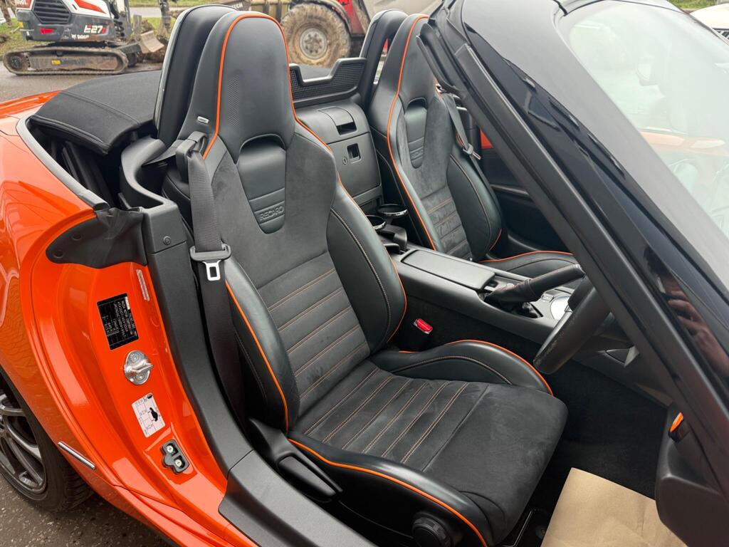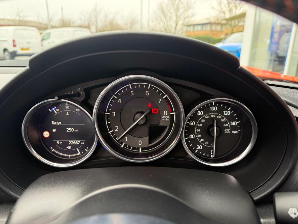 This 2019 Mazda MX-5 SKYACTIV-G 30th Anniversary Edition boasts exceptionally low mileage for its age, having covered just 22,666 miles. As a special 30th Anniversary Edition, this model features a Euro 6 compliant 2.0 litre petrol engine and comes equipped with a premium multimedia system, complete with a branded sound system and integrated Bluetooth. Enjoy seamless connectivity with Apple CarPlay and Android Auto, and experience ultimate convenience with smart keyless entry and climate control air conditioning.