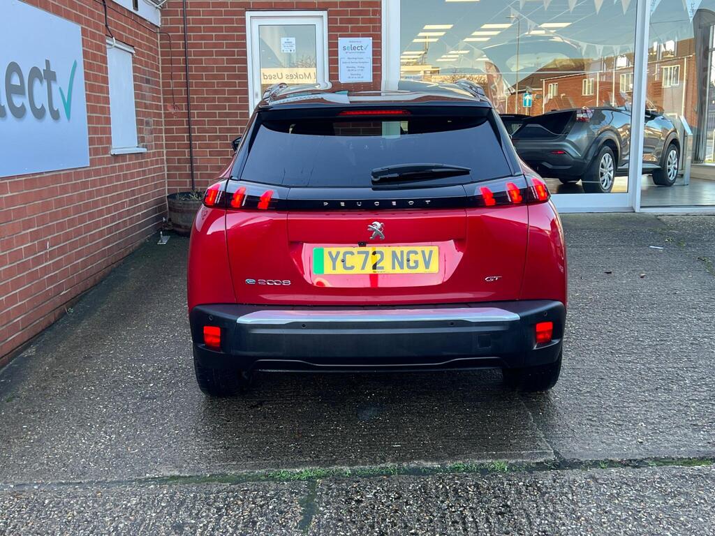 This 2022 Peugeot E-2008 GT is a fantastic example of an electric vehicle, boasting exceptionally low mileage for its age with only 21361 miles covered and having had just one owner from new. As a fully electric model, it offers a 50 kWh battery with a maximum range of 214 miles when new, making it a practical choice for daily commutes and longer journeys. Charging is convenient, with a full charge at home using a 7kW charger taking approximately 7 hours and 30 minutes, while rapid public charging can replenish the battery from empty to 80% in as little as 30 minutes.