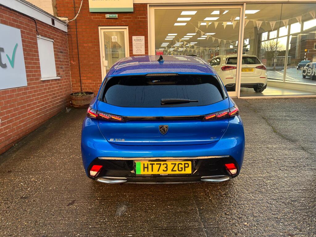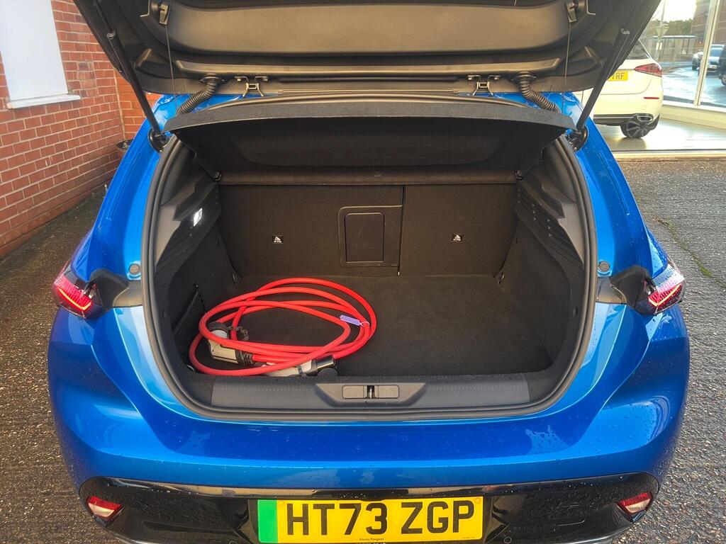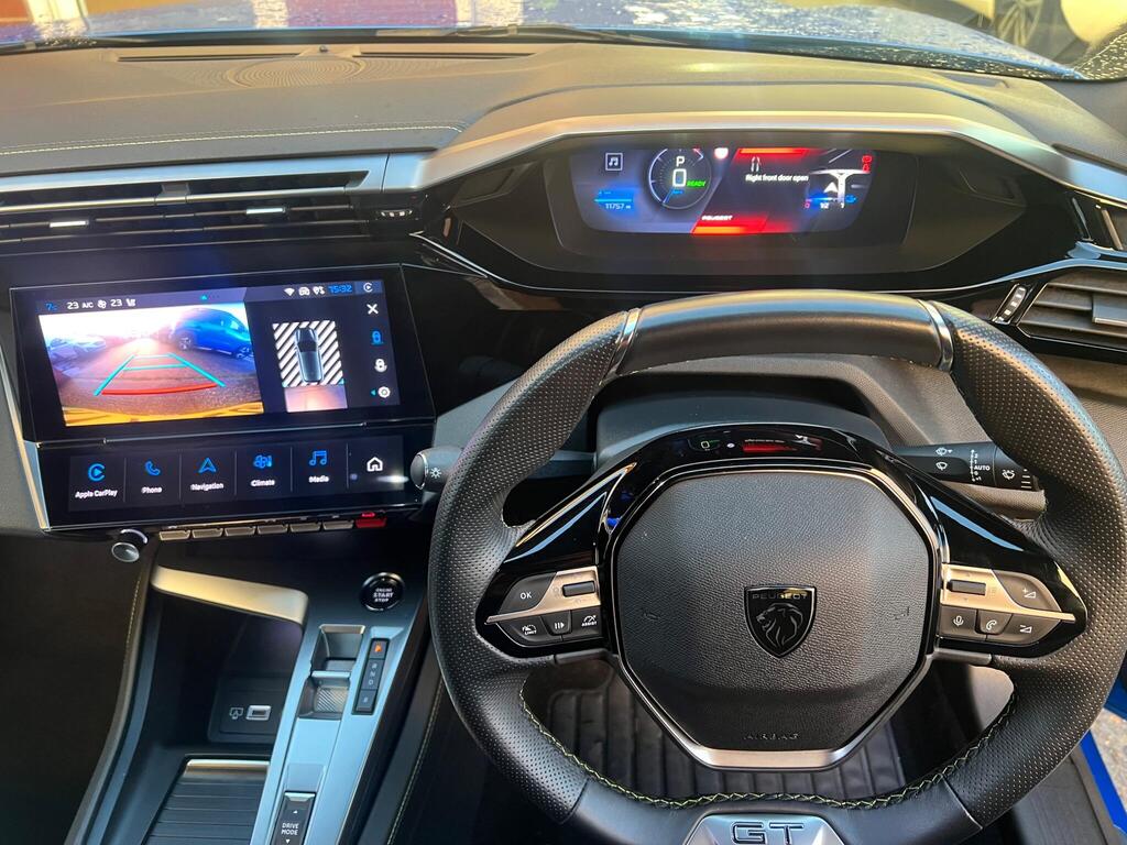 This 2024 Peugeot E-308 GT is a superb example, having had only one owner from new and boasting exceptionally low mileage for its age at just 11757 miles. As a fully electric vehicle, it offers a smooth and quiet driving experience, powered by a 54 kWh battery that provides a maximum range of 257 miles. Recharging at home on a 7kW charger takes approximately 6 hours and 15 minutes, while rapid public charging can take the battery from empty to 80% in as little as 34 minutes. This GT trim level comes equipped with a host of desirable features, including front parking sensors with assistance, automatic air conditioning with an Air Quality System, and a comprehensive Drive Assist Pack featuring Blind Spot Assistance and Adaptive Cruise Control. The Visibility Pack ensures excellent illumination with automatic on headlights and full Matrix LED headlights that adjust automatically.