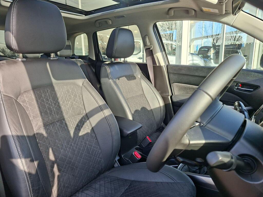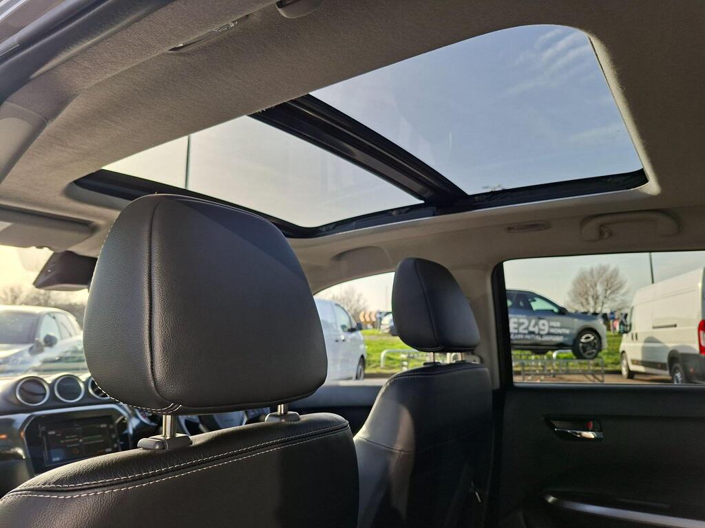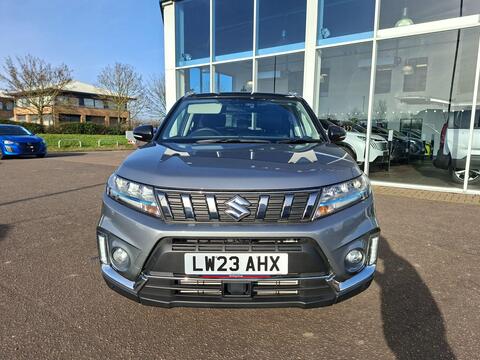This 2023 Suzuki Vitara SZ5 presents an exceptional opportunity with an incredibly low mileage of just 4231 miles, having had only one owner from new. This Euro 6 compliant 1.4 litre petrol hybrid model combines efficiency with a comfortable driving experience. It comes equipped with a host of desirable features, including keyless entry and start for effortless access, a blind spot monitor to enhance safety on the road, and a double sliding panoramic sunroof that floods the cabin with light. Navigating tight spaces is made simple with front and rear parking distance sensors, while the LED multi reflector headlamps provide excellent visibility.