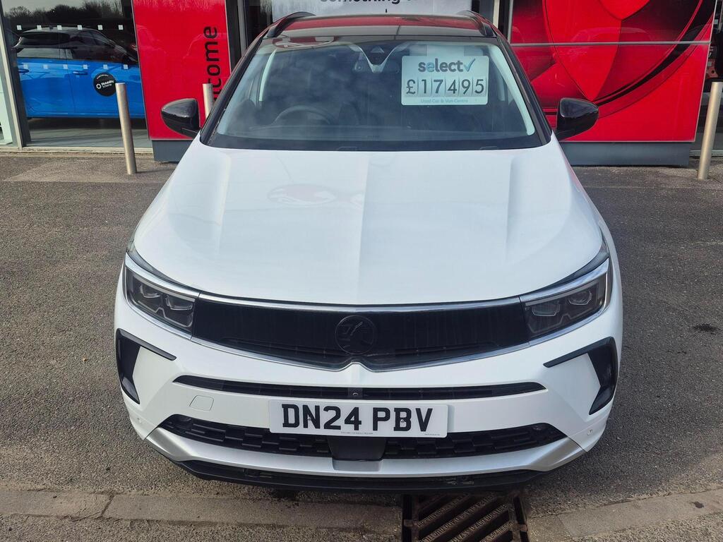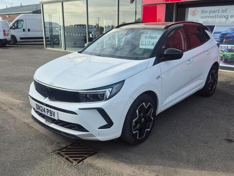 This 2024 Vauxhall Grandland Turbo Ultimate is a manufacturer approved vehicle, offering peace of mind with a 12 month warranty and a full service history. This Euro 6 compliant model boasts a 1.2 litre petrol engine and comes equipped with the desirable Ultimate trim. Notable features include Keyless Entry and Start for effortless access, a Winter Pack with heated seats and steering wheel for comfort in colder weather, and Dual-Zone Electronic Climate Control to maintain individual preferences. Driving is enhanced by Adaptive IntelliLux LED Pixel Headlights for superior visibility and Side Blind Spot Alert for added safety.