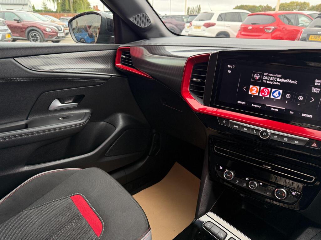 This 2023 Vauxhall Mokka Turbo GS is a Vauxhall manufacturer approved vehicle, boasting a full service history and having had only one owner from new. This stylish Mokka comes with a 6 month warranty for your peace of mind. It features a responsive 1.2L Petrol Engine, meeting Euro 6 emissions standards, and is equipped with Automatic Lighting Control with Tunnel Detection, a Front Camera System for parking assistance, and Keyless Entry with Keyless Start. Inside, you'll find a heated steering wheel and a 10in Multimedia Navi Pro system with Live Navigation, compatible with Android Auto and Apple CarPlay, alongside Bluetooth connectivity.